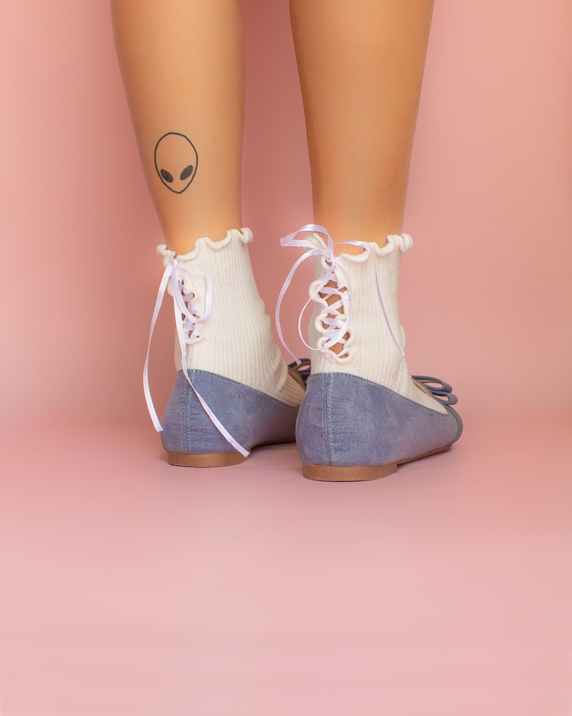 Calcetines blancos de algodón con listones y moño atrás